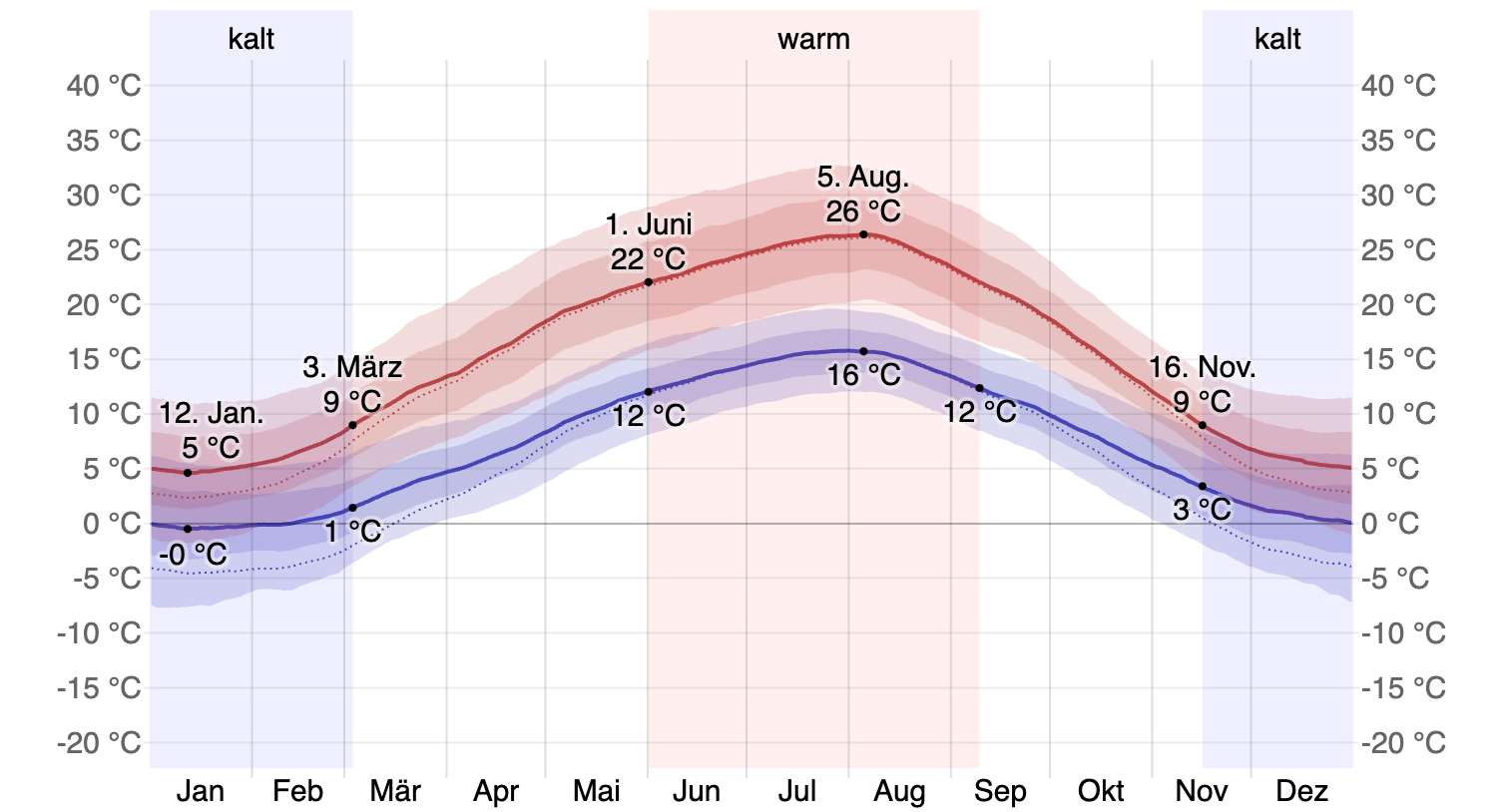 Durchschnittliche Temperaturen in Heidelberg
